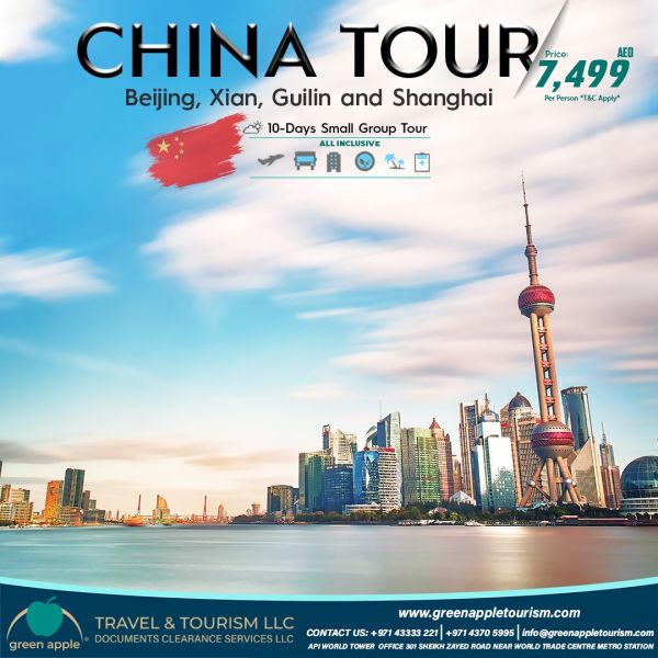 Embark on an unforgettable 10-day all-inclusive small group tour with Green Apple Travel & Tourism. Experience the rich culture and majestic sights of Beijing, Xian, Guilin, and Shanghai at an exceptional value. Adventure awaits!